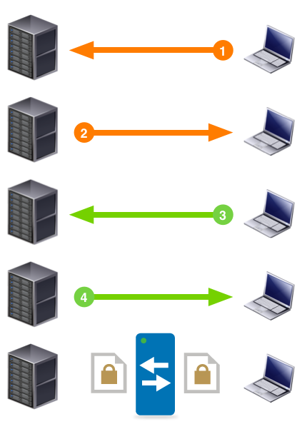 SSL/TLS funciona de forma transparente para ti, lo que en realidad ocurre cuando intentas acceder a un sitio seguro se asemeja al siguiente diagrama.